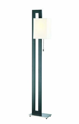 Lite Source LS-8837 Benito Floor Lamp, Polished Steel And Black with White Fabric Shade Product Description: